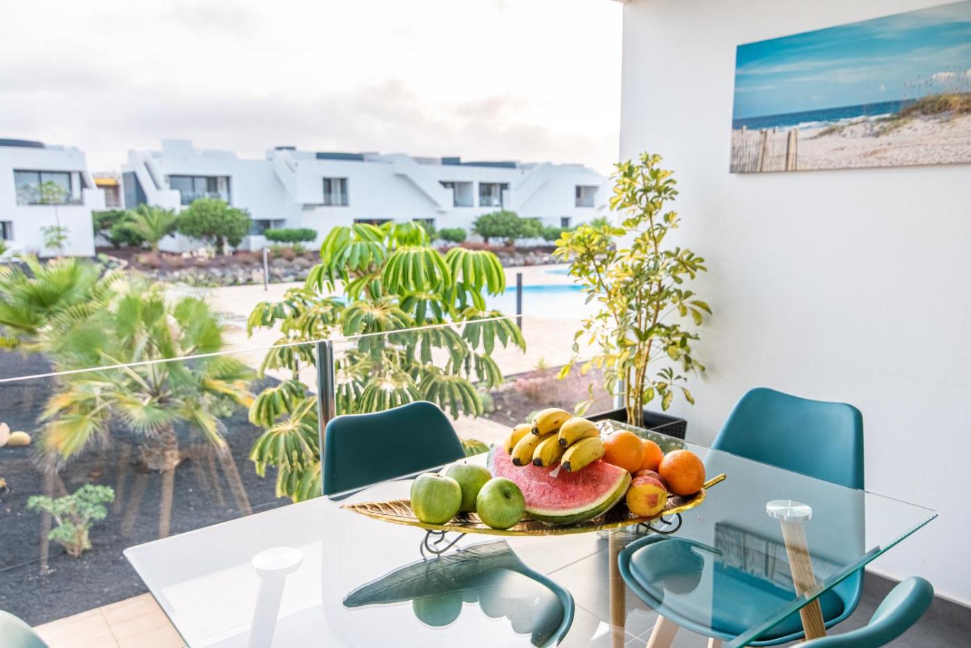 APARTAMENTO AZUL Vv -FUERTEVENTURA SITE- JACUZZI, AIRE ACONDICIONADO, Solárium, Terraza vistas panorámicas, diseño, Luxury, FUERTEVENTURA SITE, que tiene piscina al aire libre, jardín y terraza, dispone de alojamiento en La Oliva con wifi gratis y vistas a la montaña. El alojamiento, que está a 21 km de Ecomuseo de Alcogida, ofrece bar.