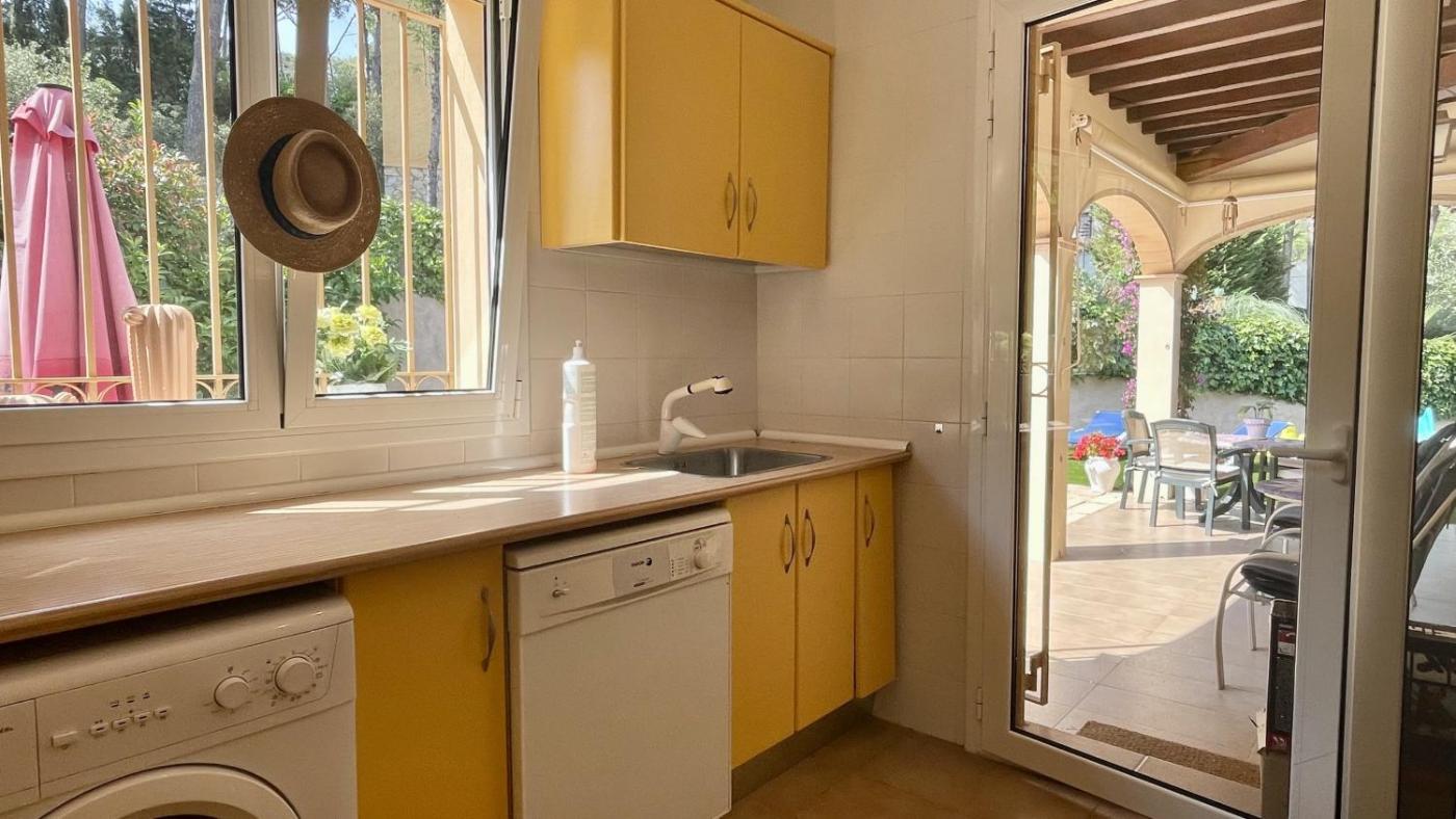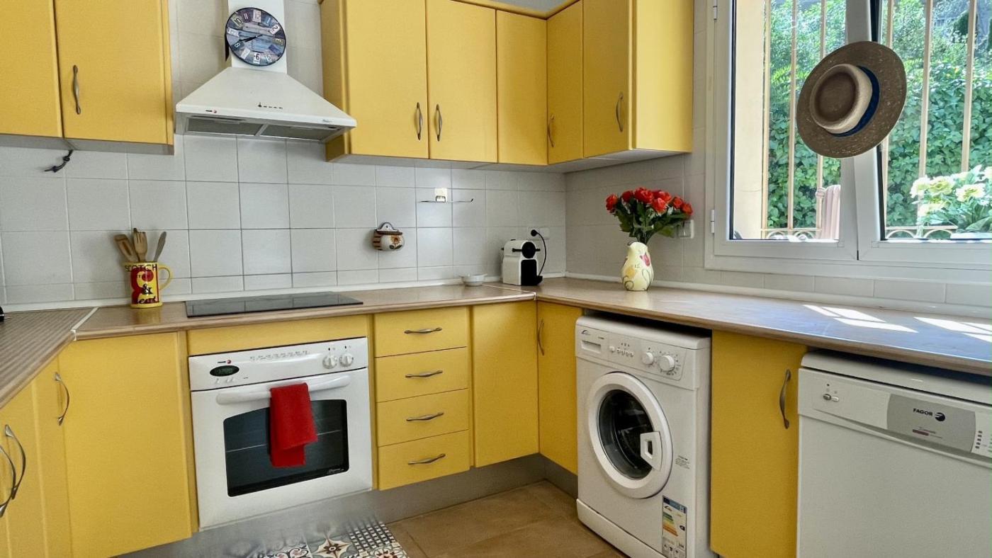 La villa dispone de 3 dormitorios, TV y cocina totalmente equipada con nevera, lavavajillas, lavadora, horno y microondas.