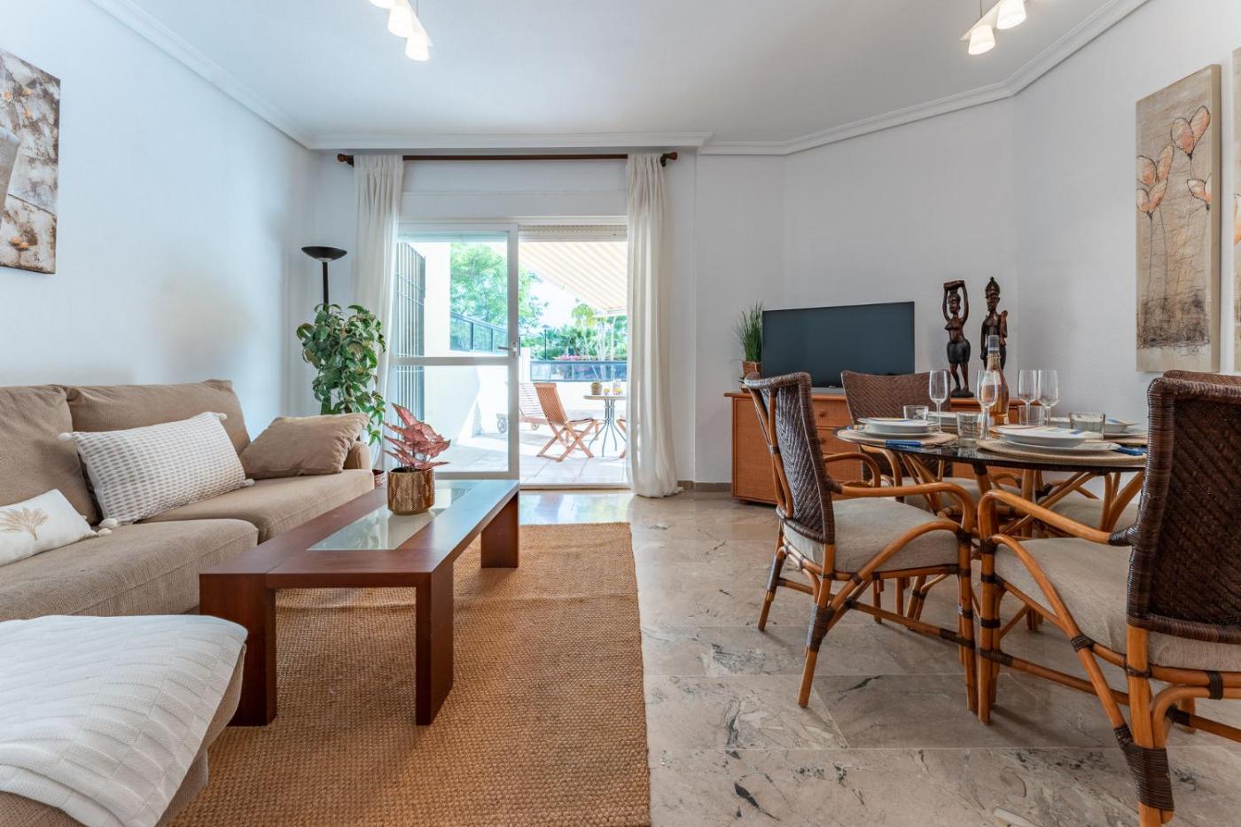 Apartamento con terraza. This spacious apartment consists of 1 living room, 3 separate bedrooms and 1 bathroom with a bath and a bidet. In the well-equipped kitchen, guests will find a stovetop, a refrigerator, a dishwasher and kitchenware. The air-conditioned apartment provides a TV, a washing machine, a tea and coffee maker, a seating area as well as garden views. The unit offers 5 beds.